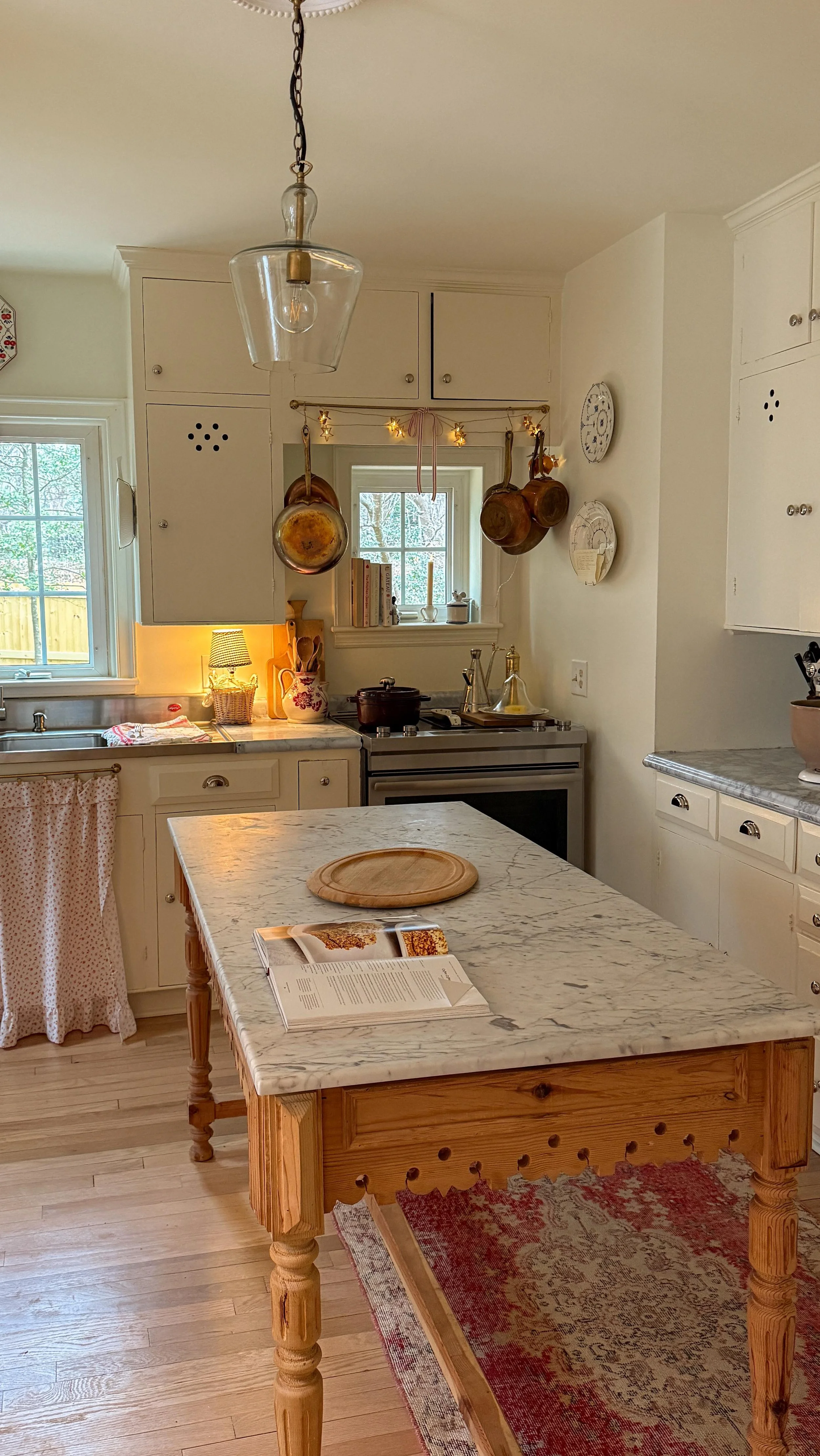 I run three small businesses from our storybook home in North Carolina, where I spend my days painting, thrifting, rearranging antiques, and occasionally remembering to water the garden.